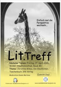 Am Freitag, 17. April 2026, um 16 Uhr laden wir vom Förderverein Stadtbibliothek Bergheim e.V. herzlich zum nächsten Lit.Treff in die Stadtbibliothek (Raum M1) ein.