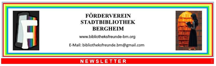 Newsletter der Stadtbibliothek: Die Stadtbibliothek Bergheim verschickt regelmäßig einen Newsletter mit Informationen zu Veranstaltungen, Neuigkeiten und besonderen Angeboten. Damit Sie diesen direkt erhalten können, würden wir – selbstverständlich nur mit Ihrem Einverständnis – Ihre E-Mail-Adresse an die Bibliothek weitergeben.